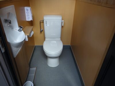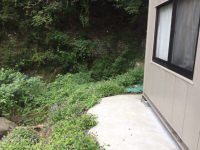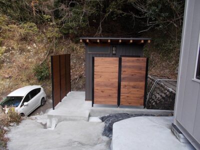 南国の某工場に女性の働きやすい環境づくりの補助事業で 駐車場奥の石垣の上にある空き地にトイレ棟を建設しました。 男性の多い職場で女性用のトイレを作りたいとの事でご依頼を受けました。 石垣を突きなおして駐車場からも来客者様が使い易いようしました。